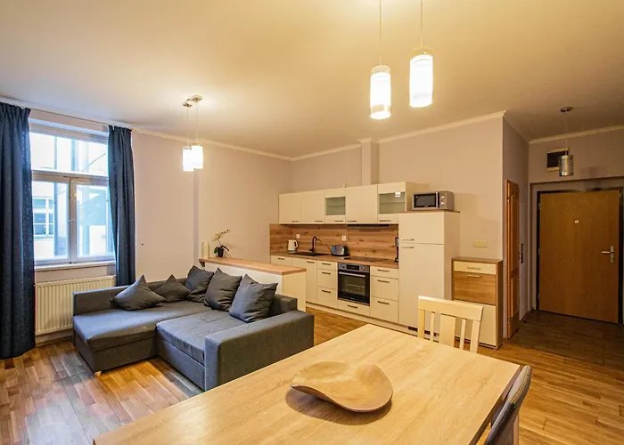 В апартаментах имеется угловая кухня с микроволновой печью, электрочайником и духовкой, а также кофеваркой. Кроме того, здесь есть обеденный стол, что обеспечивает более комфортные условия для приёма пищи. Вы можете отправиться в ресторан Bistro L, который расположен в 5 минутах ходьбы и предлагает блюда итальянской кухни. Аэропорт Вацлава Гавела Прага находится в 25 минутах езды, а автобусная остановка Myslikova - на расстоянии 5-минутной прогулки от апартаментов.